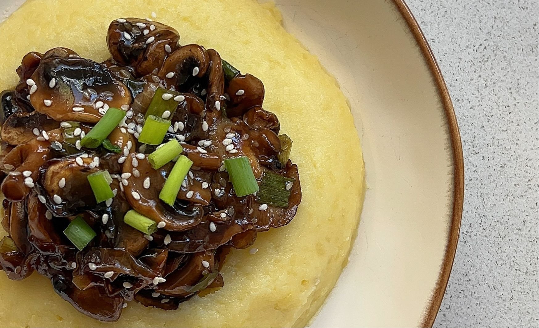 פטריות מוקפצות ברוטב אסייתי על פירה