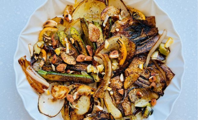 מחבת ירקות אביבית עם לימון ושקדים #talmeiri_keto